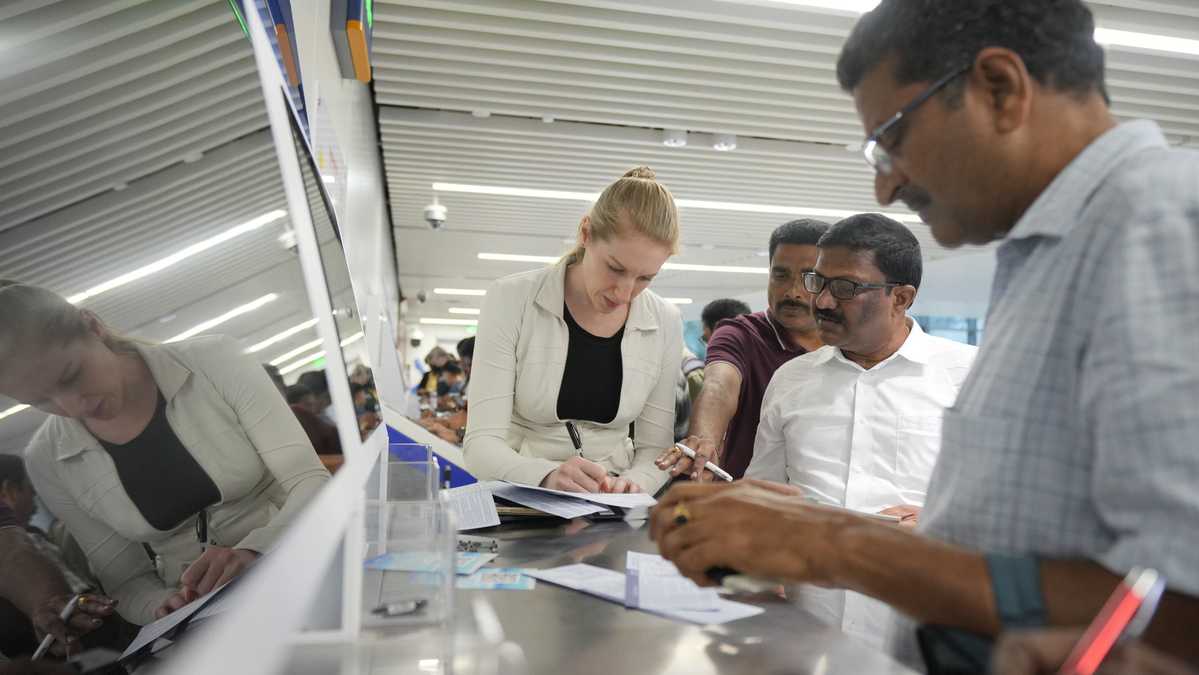 Inbound travelers are processed at the Haikou Meilan immigration checkpoint with the assistance of border inspection officers. PROVIDED TO CHINA DAILY