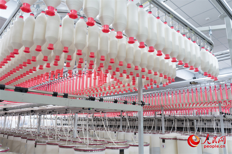 A view of a spinning workshop in the textile industrial park in Yining county, northwest China's Xinjiang Uygur Autonomous Region. (People's Daily Online/Chang Sha)